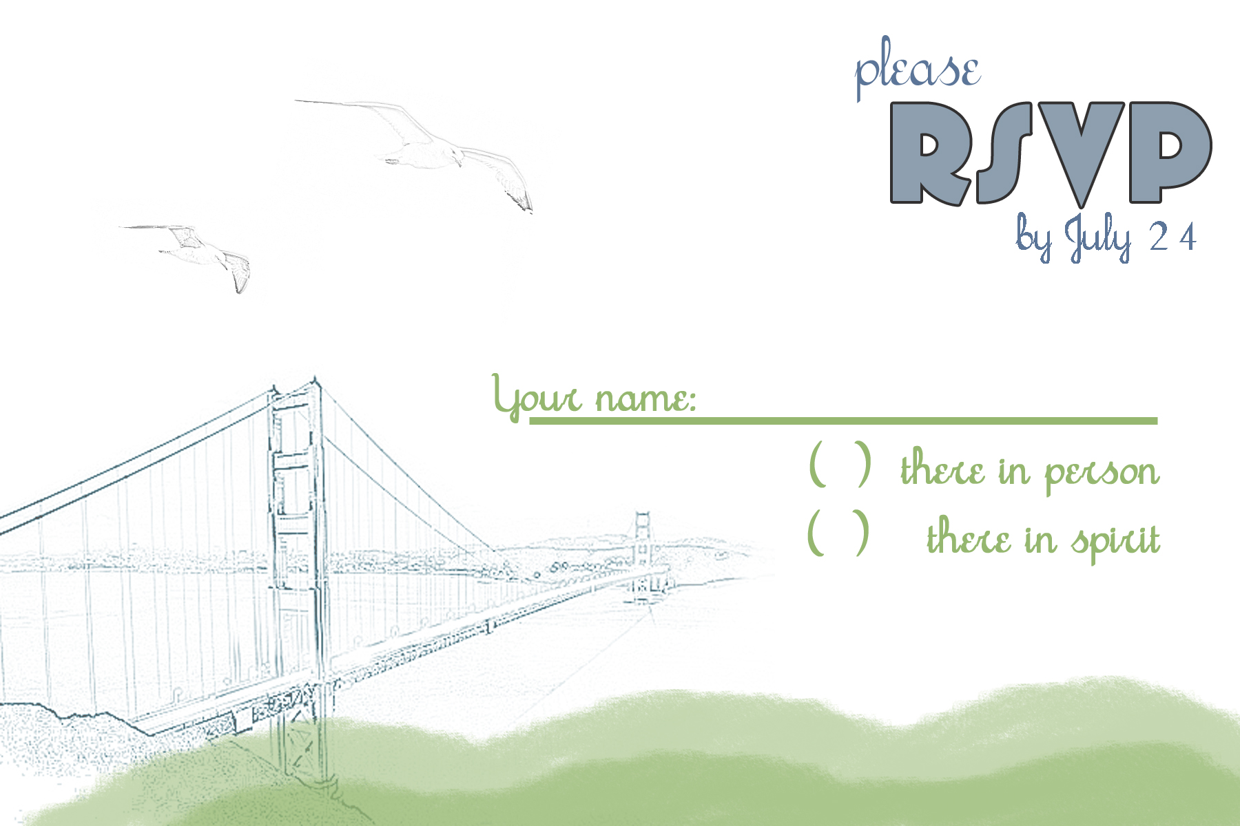 or the first one I created (with matching RSVP card). The only real problem I have with the last one (the first one? ack, confusing) is that I can’t seem to match the color of the ink in Photoshop to the paper backing, so the printed versions always come out sort of weird, and I’d have to do a bunch more trial and error to figure it out. So frustrating!