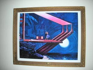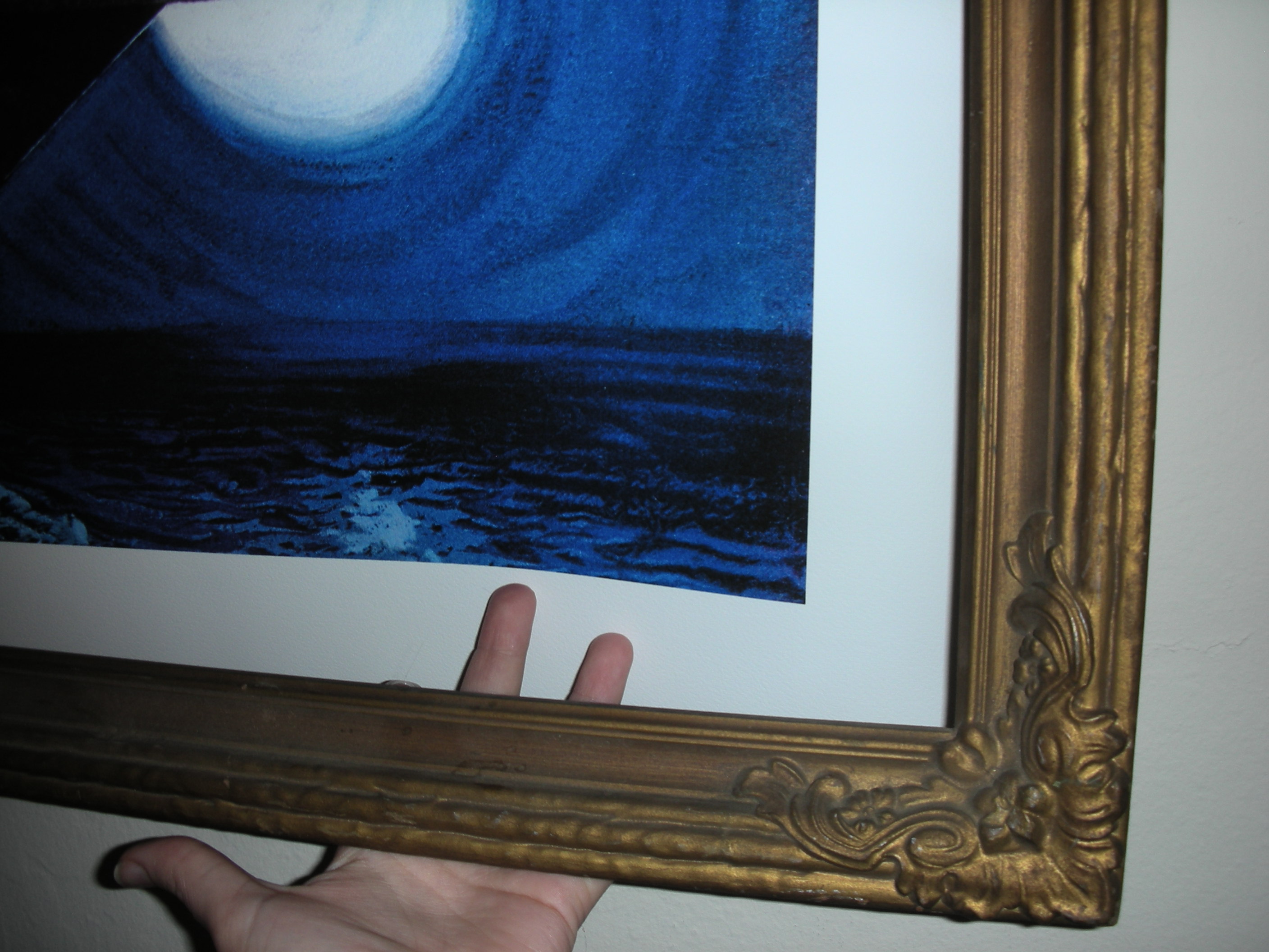 Above is the finished product. I started with an old, empty frame without glass, so I ended up having to tack the print to the wall, and then hang the frame around it.