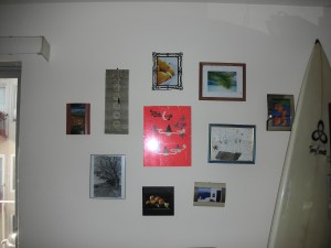 Then I decided to do something interesting with all the framed photos and drawings I had laying around and came up with this (apologies for the poor quality):